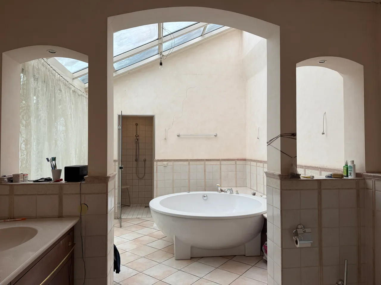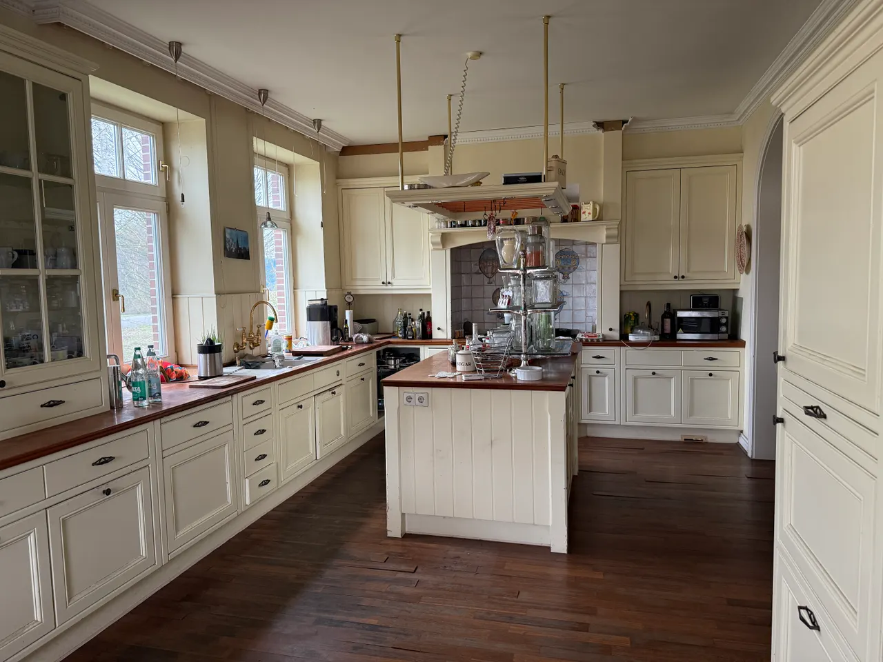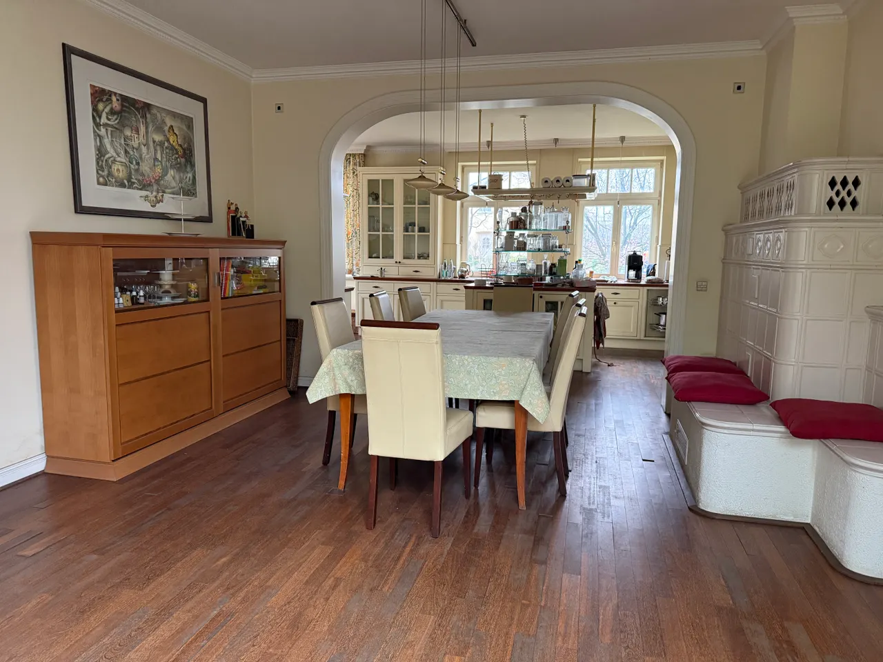 Das komfortable Wohnhaus aus dem Jahr 2001 bietet auf einer Wohnfläche von ca. 440 m² großzügigen Wohnkomfort. Es verfügt über insgesamt 10 Zimmer, darunter 5 Schlafzimmer und 2 Badezimmer. Die großzügige, lichtdurchflutete, offene Küche, das Esszimmer mit einem gemütlichen Kachelofen und das Wohnzimmer mit Kamin schaffen eine angenehme, einzigartige Wohnatmosphäre. Das Haus verfügt über einen Freizeitbereich mit Schwimmbad, Sauna, Dusche und WC (ca. 100 qm Nutzfläche) und einem Wintergarten. Ein geräumiger Keller sorgt für zusätzlichen Stauraum.