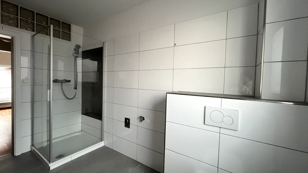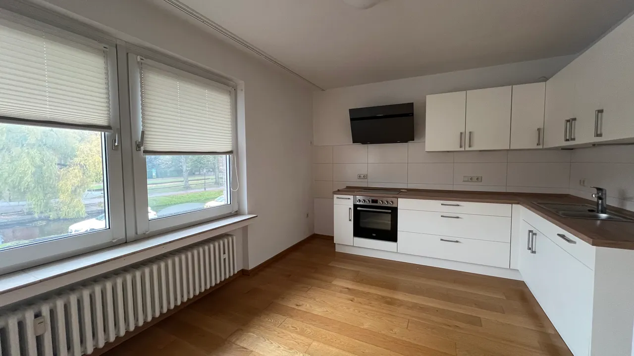 Wohn-/Esszimmer mit Kochbereich und Einbauküche, 3 Zimmer, 2 Bäder, Diele/Flur, Balkon