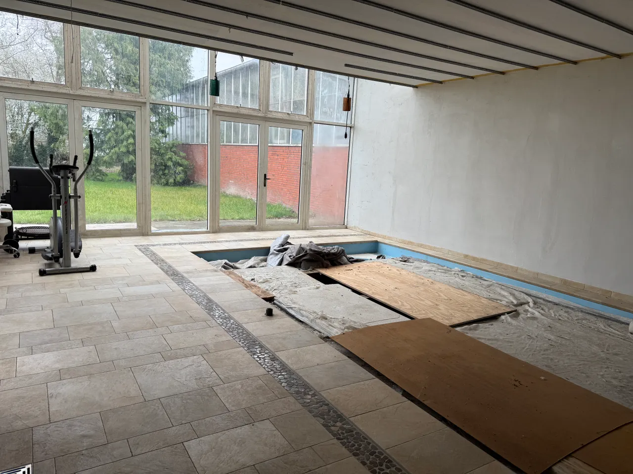 Zusätzlich verfügt das Haus im Erdgeschoss über einen Freizeitbereich. Hier wurden ein Schwimmbad mit Sauna, Dusche und WC geplant. Sauna und Schwimmbad wurden bisher nicht in Betrieb genommen, der Raum anderweitig genutzt.