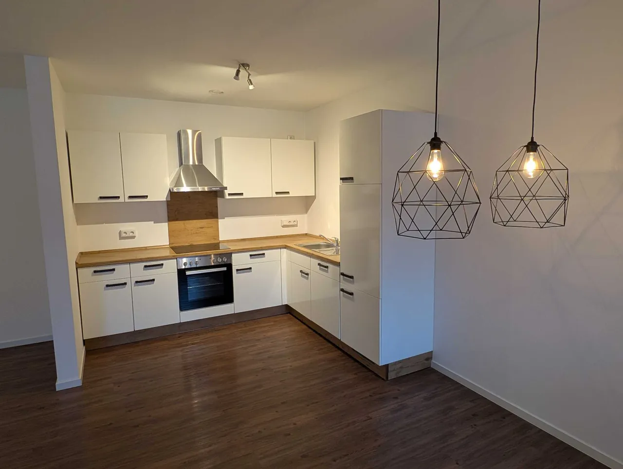 Wohn-/Esszimmer mit integriertem Kochbereich inkl. Einbauküche, Schlafzimmer, Bad/WC, Gäste-WC, HWR, Flur, Terrasse, Parkplatz