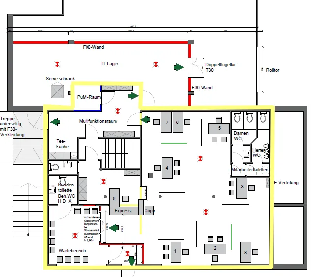 Ladenlokal, Kühlraum, Personalraum, Personal-, Damen- und Herren-WCs