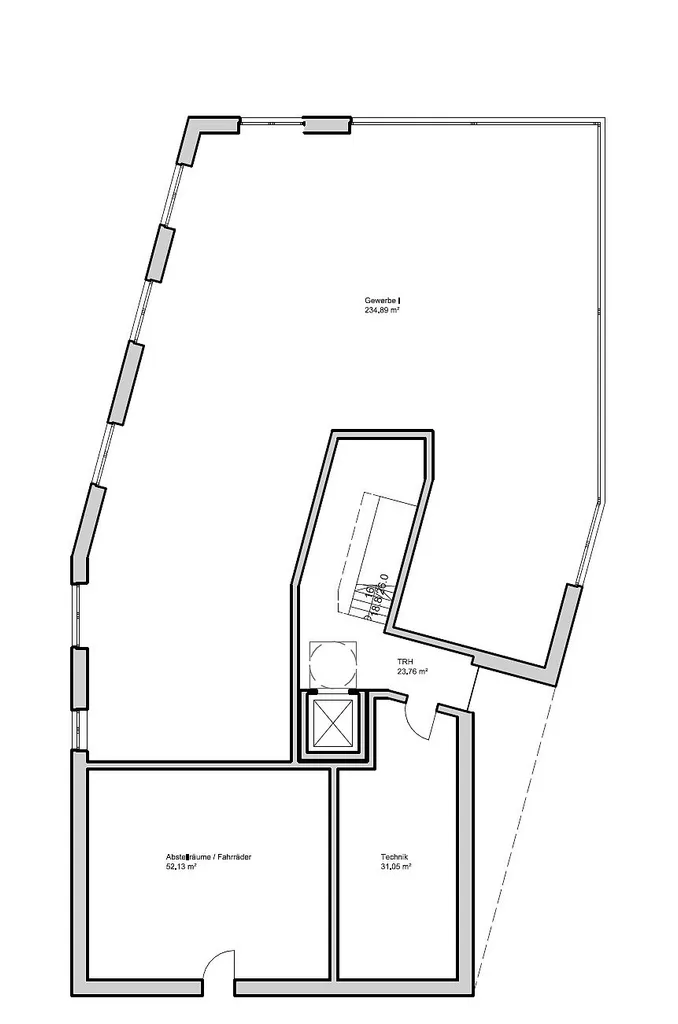 Die vermietbare Erdgeschoss-Gewerbefläche beträgt ca. 235 m² Nutzfläche.