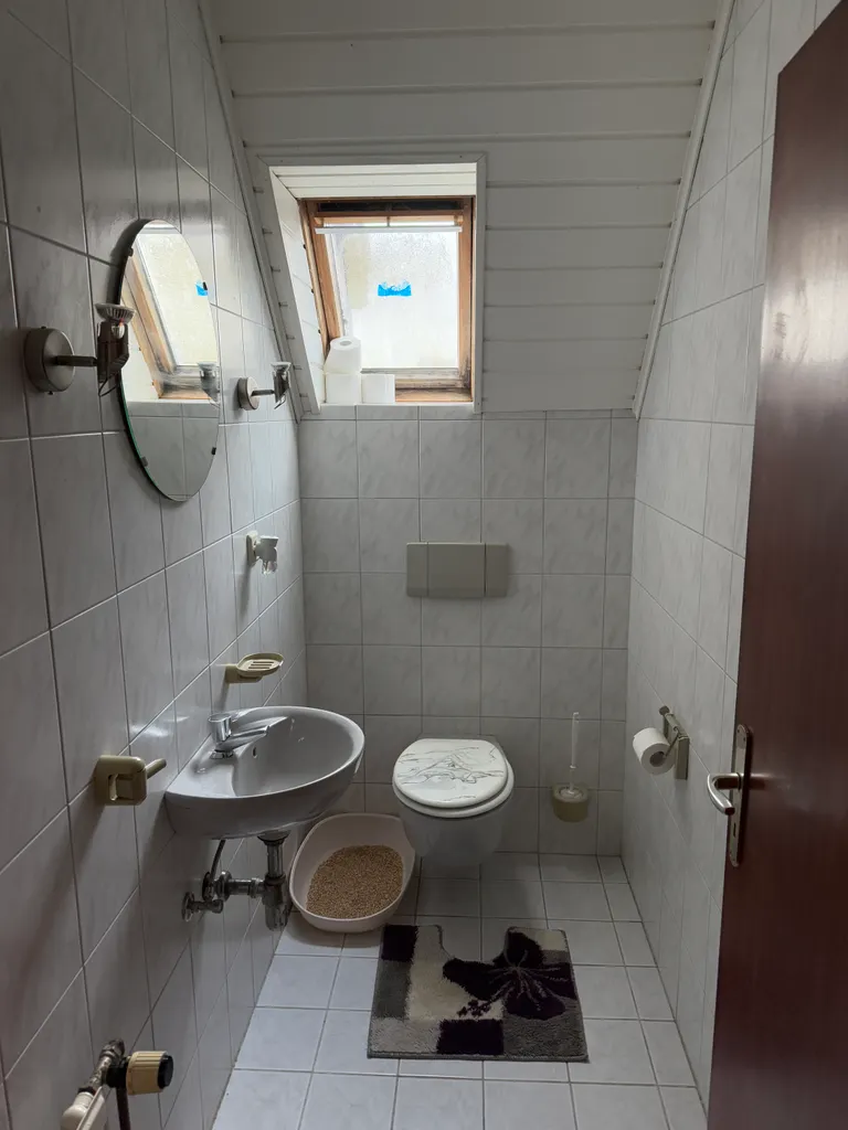 Das Wohnhaus ist insgesamt mit Kunstofffenster-Isolierverglasung und einer Gasheizung ausgestattet. Die Bäder wurden zwischenzeitlich modernisiert. Mehrere Ausstattungsmerkmale entsprechen dem Zeitgeist der 60er Jahre. Das Objekt ist renovierungsbedürftig und wird zum 30.04.2026 geräumt.